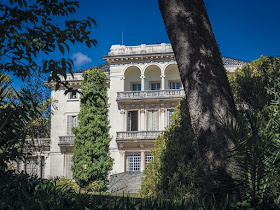 Quando eu era pequena a minha Mãe falava-me das visitas que em tempos fizera com o seu Avô paterno a um palacete rodeado por um grande parque que ficava relativamente perto da casa onde ambos viviam, na Avenida António Augusto de Aguiar. Recordava sobretudo o jardim e a quinta, o moinho de vento, a água que escorria de cascatas forradas de fetos e de avencas, os túneis de buxo e, a meio da tarde, os chás e as bolachinhas servidos ao ar livre na sombra cheirosa de um caramanchão coberto de rosas de Santa Teresinha.